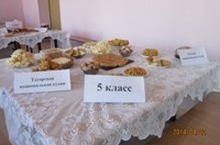22 апреля 2014 года в нашей школе прошел праздник - День национальной кухни. В рамках праздника состоялась выставка блюд русской и татарской кухни. Школа была украшена "аппетитными" рисунками и плакатами,выполненными учащимися 1-5 классов, ребята подобрали интересные пословицы о вкусной и здоровой пище. Праздник оказался не только вкусным, но и полезным, - познакомил школьников с народными традициями.Классные руководители с учащимися сделали выставку : "Все вкусно и полезно"
