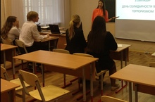 "В рамках месячника безопасности в нашей школе прошел День солидарности в борьбе с терроризмом. Среди учеников 5-8 классов были проведены беседы на тему "Терроризму - нет", ученикам 9-11 классов был показан видео-ролик и проведен коллоквиум."
