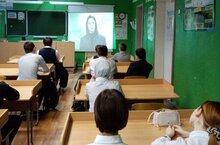 После линейки обучающиеся разошлись по классам на внеурочное занятие «Разговоры о важном» по теме "Год защитника Отечества"