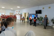 Посвящение первоклассников в Орлята России - вручение им значков " Орлята России" и удостоверений, как символа принадлежности к содружеству Орлят России, было завершено поздравлением директора школы Абдурашитовой А.Ш., классными руководителями и школьниками. -