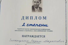 Ученик 9Б класса, Зинатуллин Карим, занял 2-место в городской научно-практической конференции школьников и студентов "Абсалямовские чтения".