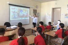 В рамках Всероссийской акции «Традиции здорового питания» ученицы 9 класса познакомили учащихся 5 классов с традициями питания различных народов России. Ребята узнали о национальных блюдах различных регионов. Затем была проведена викторина, в которой учащиеся показали свои знания, полученные в ходе беседы. Ребята сделали вывод, что в каждом регионе свои традиционные блюда, но все же есть и схожие.