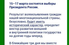 15-17 марта состоятся выборы Президента России. Результат волеизъявления граждан нашей многонациональной страны, безусловно, будет иметь исторический характер, определит вектор развития внешней и внутренней политики государства на долгие годы вперед.