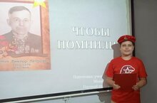 В рамках Декады пожилого человека учащиеся 1а, 3а, 7а приняли участие в акции "Память в наших сердцах". Цель акции направлена на сохранение памяти о родственниках-ветеранах ВОВ. Так учащиеся 7а класса Махмутов Тимур, Мустафина Милана поделились с учениками начальной школы информацией о своих героях-прадедушках.