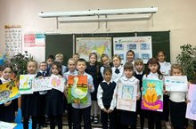 Учащиеся начальной школы подготовили рисунки на тему " Лапа дружбы". -