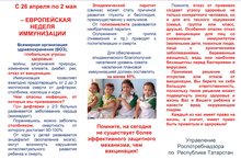 По инициативе Всемирной организации здравоохранения в Европе, в том числе в Российской Федерации и Республике Татарстан в период с 26 апреля по 2 мая 2021г. проводится Европейская неделя иммунизации 29.04.2021
