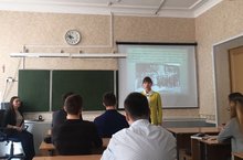 13 апреля в преддверии Дня Победы учитель истории и обществознания Ханнанова Р. Р. провела урок-лекцию на тему "Вклад Татарской АССР в Победу в Великой Отечественной войне" в 10 "А" классе. Лектором стал приглашенный гость - учитель обществознания Инженерного лицея, магистр первого года обучения Казанского университета Ермолаева К. А. Лектор рассказала о цене Победы для Татарской республики. Ребята узнали о дивизиях, формировавшихся на територии республики, эвакуированных предприятиях в Казань, судьбах Героев войны. Во время урока были просмотрены видеоролики о деятельности тыла в годы войны. Ребята, в свою очередь, прочли стихи татарского поэта - героя войны М. Джалиля. Тема, поднятая на уроке, нашла искренний отклик в сердцах присутствующих. Урок завершился минутой молчания в память жертв и героев Великой Отечественной войны. -