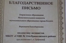 Управление образования Исполнительного комитета муниципального образования г.Казани выразило благодарность коллективу учителей начальных классов нашей школы за участие в проекте "Эковолонтеры" и достижение высоких результатов в области воспитания подрастающего поколения.От лица коллектива нашей школы мы хотим поздравить учителей начальных классов и пожелать дальнейших успехов в их работе! -