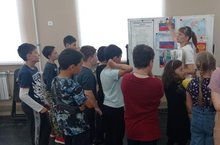 14 июня в пришкольный лагерь "Умник-Ум" школы 114 г.Казани по приглашению учителя истории и обществознания Нигматуллиной К.И. приехали Серебряные волонтеры для проведения мероприятия, посвященное Дню России. Волонтеры - Савия Шакирьянова, Людмила Сайфутдинова, Наиля Биктимирова, Кадрия Нигматуллина совместно с заведующей городской библиотекой-филиалом номер 4 Волковой Светланой Алексеевной, учителем музыки Замалетдиновой Венерой Исламутдиновной показали ребятам презентацию про государственные символы России - герб, гимн, флаг, провели викторину для юных знатоков, организовали квест с четырьмя станциями: "Споемте, друзья!", "Родина", "Найди меня на карте", "Символы России".
