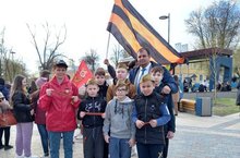 Ученики 5А и 6Б классов под руководством учителя истории и обществознания Нигматуллиной К.И. с флагами в руках и в пилотках побывали в роли юных волонтеров: раздавали людям старшего поколения символ Победы - Георгиевскую ленточку.