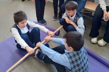 Сегодня в рамках Недели истории и обществознания, ученики 6б класса на одной из переменок провели игры народов России для учащихся 2б класса. Ребята успели поиграть в скакалку, с мячиком, "Крокодил", "Ручеек", перетягивание палки. Все игры направлены на формирование у ребят силы, ловкости, внимательности, памяти, командного духа.