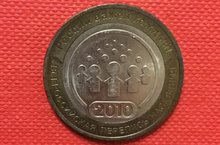 Дни переписи населения в школе 114. День второй: представляем Вашему вниманию монету номиналом в 10 рублей. Оказывается 2 августа 2010 года Банк России выпустил юбилейную монету номиналом 10 рублей, посвященную Всероссийской переписи населения -2010. . Ее главной особенностью стал ограниченный тираж - 2 300 000 штук, который повлиял на распространенность среди населения и окончательную стоимость. На лицевой стороне монеты в центре расположен ее номинал "10 РУБЛЕЙ", причем внутри цифры "0" имеются скрытые, видимые поочередно при изменении угла зрения изображения цифры "10" и надписи "РУБ". Справа и слева расположены стилизованные ветви растений. В нижней части указан год чеканки - 2010, в верхней части имеется надпись "Банк России". Монета выпущена Санкт-Петербургским монетным двором.