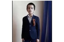 Ученик 5Б класса Мухаммадраф Содиков исполнил песню военных лет "Катюша".