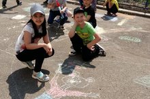 Ребята с нетерпением ждали этот конкурс, чтобы дать волю фантазии на асфальтных дорожках рисовать разноцветными мелками. Настроение у всех было отличное, ребята были в восторге от «шедевров», которые у них получились.