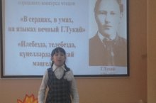 Сегодня ученица 4а класса Галимуллина Гузель участвовала в районном этапе городского конкурса "Всердцах, в умах, на языках вечный Г.Тукай" со стихотворением "Кышкы кич"