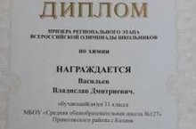 Поздравляем усченика 11 класса Василева Владислава с дипоомом призера Регионального этапа Всероссийской олимпиады по химии, руководитель Русскова Л.Г.