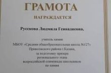Поздравляем Русскову Л.Г. с грамотой МО и Н РТ за подготовку призера Регионального этапа Всеросской олимпиады по химии.