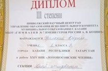 13 марта в гимназии 7 прошла научно- практическая конференция Ломоносовские чтения. Ученик 2в класса Уральский Кирилл занял 3 место, учитель Туманова И.А.