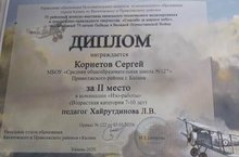 Поздравляем с дипломом 2 степени районного конкурса "Спасибо за мирное небо"Корнетова Сергея ! Учитель:Хайрутдинова Л.В. Молодцы! -