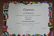 Поздравляем победителя городского конкурса "Ин-фест" Кужахметову Анастасию.
