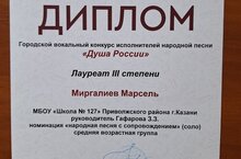 Поздравляем Миргалимова Марселя, лауреата Городского вокального конкурса исполнителей народной песни., руководитель Гафарова З.З.