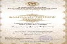Поздравляем Гиматдинова Р.Р. с Благодарственным письмом, за участие в республиканской игре по городскому оринтированию (краеведение) проекта "Tat-Rus"