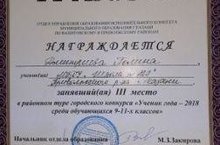 Поздравляем Дмитриеву Полину, ученицу 10 а класса, занявшую 3 место в районном конкурсе Ученик года!