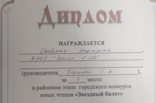 Поздравляем ученицу 10 класса Сновскую Маргариту с Дипломом 2 степени в районном этапе городского конкурса "Звездный билет", руководитель Гараева Г.М.