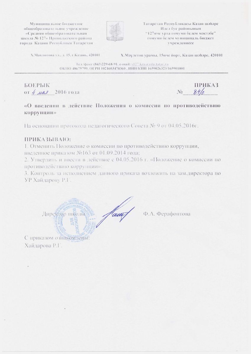 Положение о комиссии по противодействию коррупции по МБОУ "Школа№127"