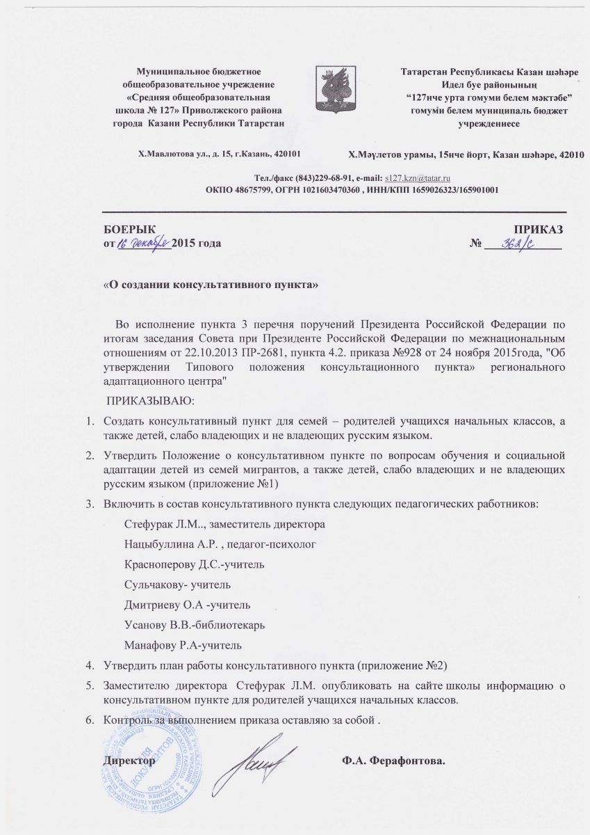 Работа консультационного пункта по вопросам обучения детей из семей мигрантов