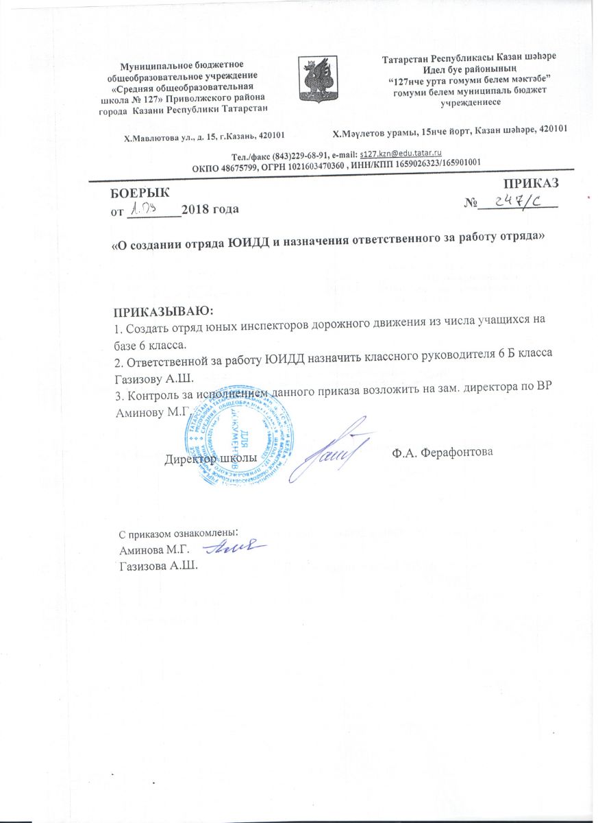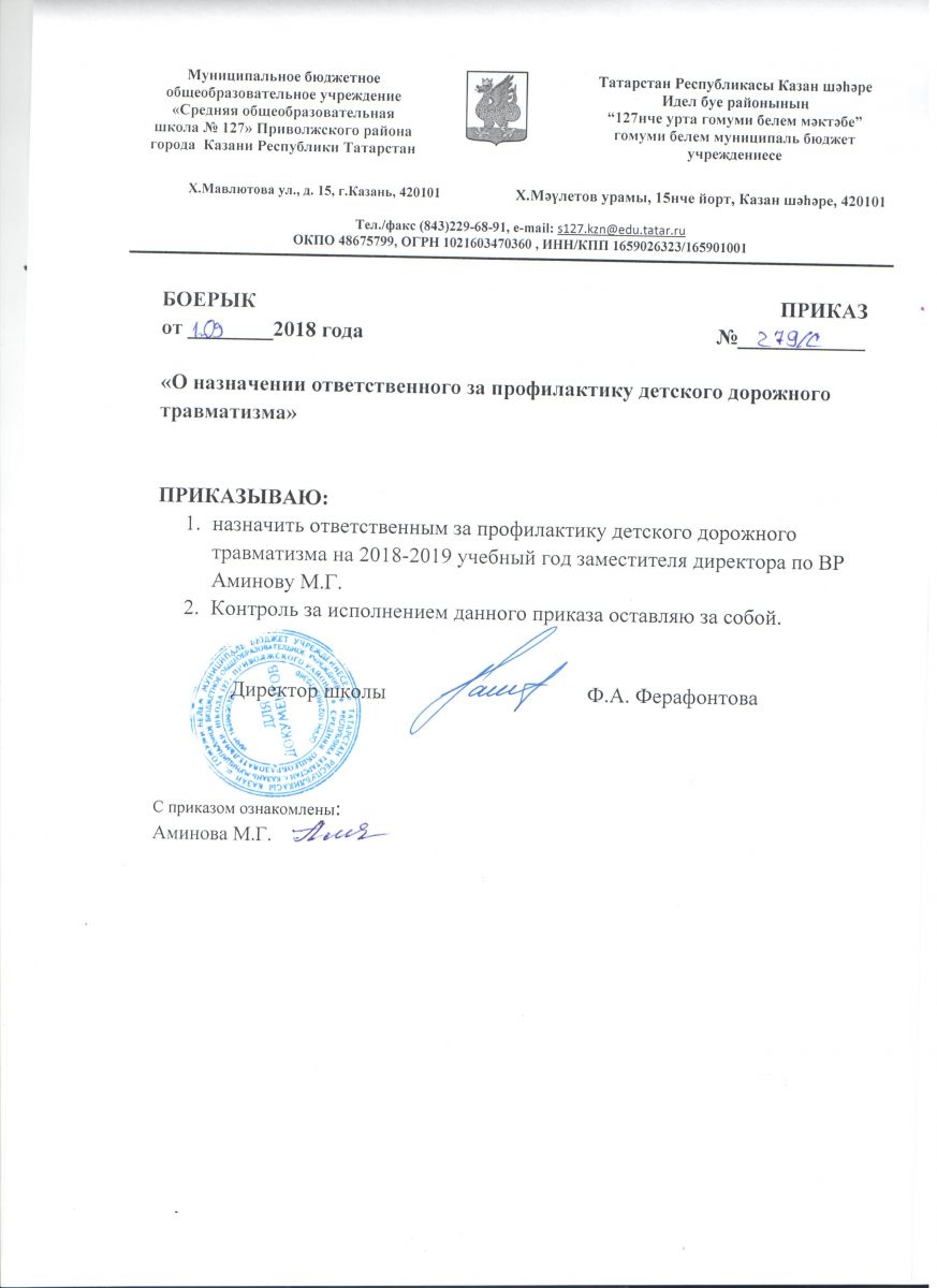 Приказ о назначении ответственного по профилактике ДТП 2021г