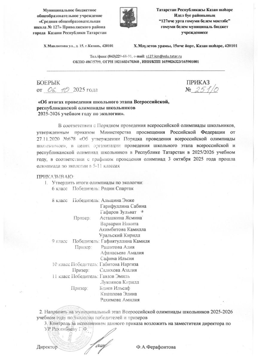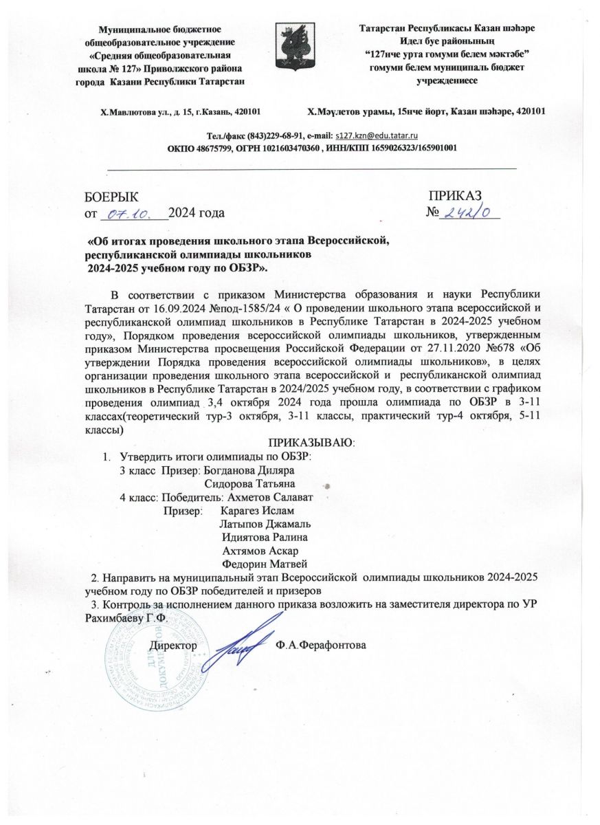 Муниципальное бюджетное общеобразовательное учреждение "Средняя общеобразовательная школа №127" Приволжского района города Казани