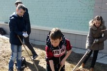 Школьники, начиная с 5 класса, трудились на территории: убирали остатки снега, прошлогодние листья.