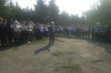 Ученики школы, ветераны во главе с дректором школы Зеленевой Лирией Ханифовной провели торжественный митинг возле плиты-памятника в Ж.м. Первомайский, ул.Красноуральская