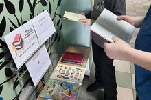 В МБОУ «Школа 136» был оформлен книжный стенд у библиотеки.