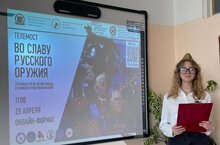 Телемост «ВО СЛАВУ РУССКОГО ОРУЖИЯ», посвященный 80-летию Победы в Великой Отечественной войне Волгоград 2024 год Россия находится на перекрестке цивилизаций и многие войны её имели именно цивилизационный характер. Это были войны на выживание и главный вопрос заключался в том, будет ли существовать страна или нет 25 апреля 2024 года прошёл телемост «Во славу русского оружия», посвященный 80-летию Победы в Великой Отечественной войне. Участники телемоста: Алтай, Алания, Ямал, Тюмень, Калининград, Казань, Майкоп, Минск, Элиста, Ставрополье, Краснодарский край, Волгоград, Волгоградская область. От нашей школы участвовала Моисеева Полина Дмитриевна/10Акл/МБОУ «Школа №136» г. Казани Поздравляем Полину с успешным выступлением, желаем дальнейших успехов и творческих задумок!