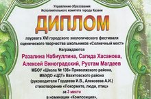 Поздравляем Лауреатов и участников XVI городского экологического фестиваля сценического творчества школьников "Солнечный мост".