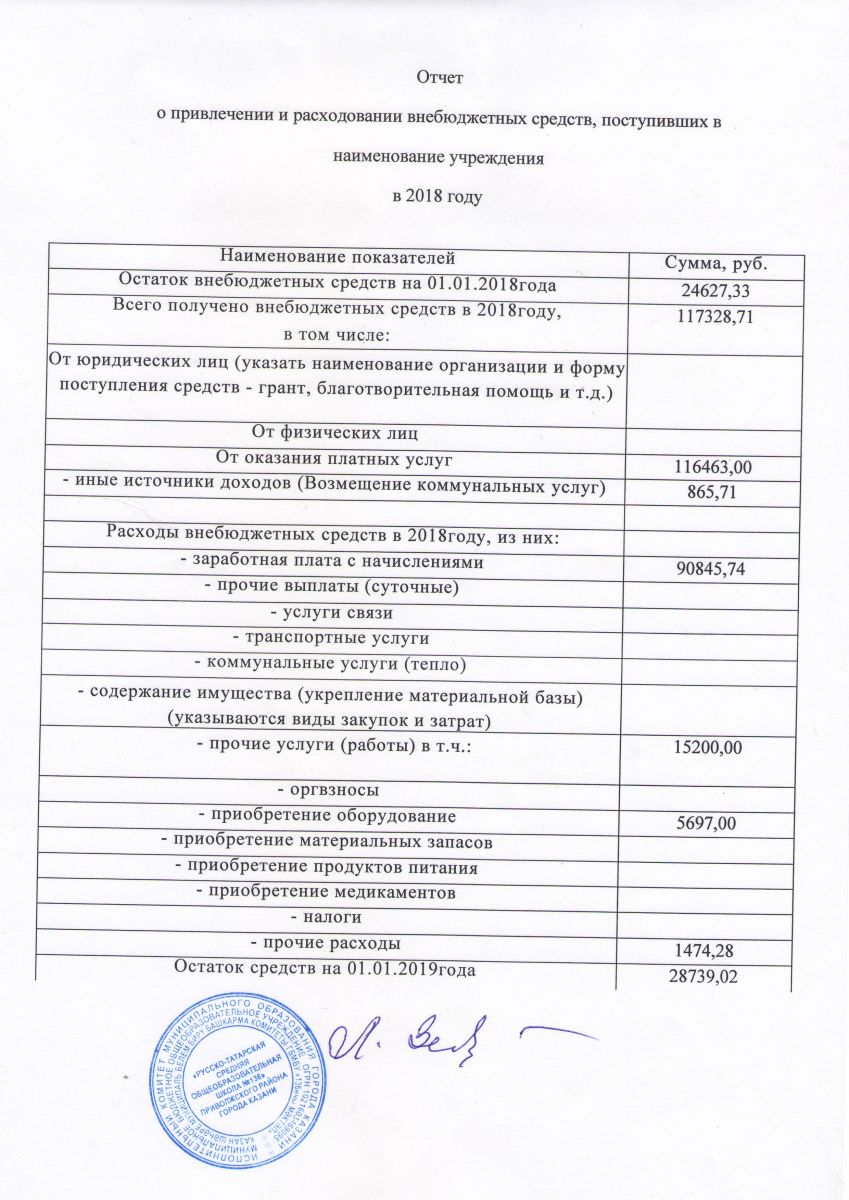 Отчет о привлечении и расходовании внебюджетных средств, поступивших в 2018 году