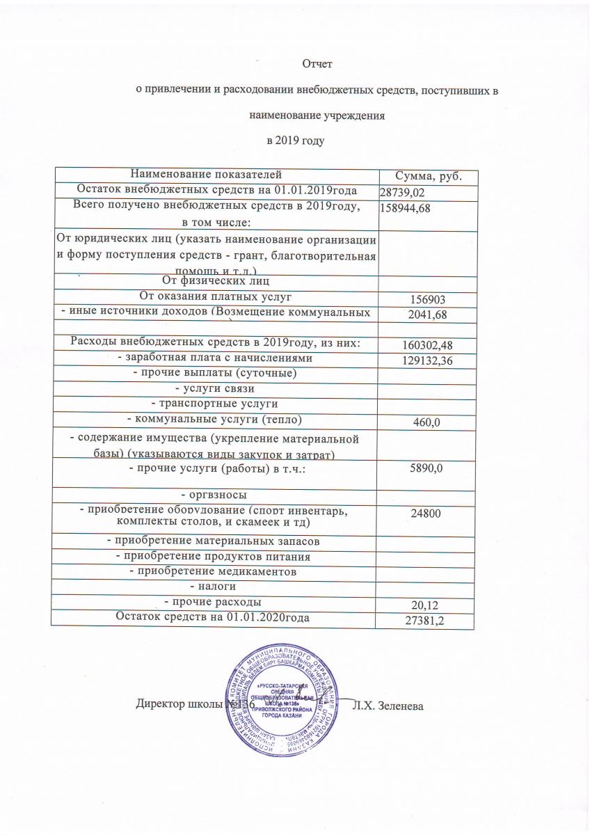 Отчет о привлечении и расходовании внебюджетных средств, поступивших в 2019 году