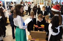 В рамках проведения общешкольного мероприятия «Народы мира» в центральном холле гимназии состоялся традиционный новогодний фестиваль «Музей в чемодане». Учащиеся 5-11 классов, активисты детского движения школьников, классные руководители подготовили передвижные мини-музеи, рассказывающие о традициях проведения Нового года в разных странах. Опытные экскурсоводы рассказали об истории создания новогодней игрушки, традициях празднования праздника в СССР. Первыми ценителями музеев стали ученики начальных классов. Выступления, подготовленные лекторскими группами средних и старших классов, вызвали интерес у всех учащихся гимназии, учителей.
