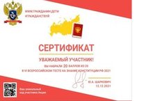 12-13 декабря 2021 года в честь Дня Конституции Российской Федерации состоялась ежегодная акция «Всероссийский тест на знание Конституции РФ», в которой приняли активное участие старшеклассники гимназии. Акция проводится с целью оценки уровня знаний граждан о конституционном строе РФ, вовлечения населения в изучение основополагающих принципов жизнедеятельности общества, а в частности Конституции РФ.