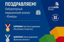 Поздравляем Сорокину Светлану, ученицу 9А класса нашей гимназии, с победой в финале VIII Национального чемпионата «Молодые профессионалы» (WorldSkills Russia-2020) в категории ЮНИОРЫ по компетенции «Лабораторный медицинский анализ».