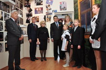 17 ноября музеи нашей гимназии посетили почётные гости -Фарид Хайруллович Мухаметшин, председатель Государственного Совета, Федорова Тамара Трофимовна, начальник Управления общего образования МОиН РТ, Хадиуллин Ильсур Гараевич, начальник Управления образования исполнительного комитета города Казани.В Музее В.П. Аксенова учитель русского языка и литературы Романова Людмила Юрьевна рассказала о направлениях работы музея, об истории его создания. Гимназисты Павлов Марат, Тукмакова Алина, Ганеева Инесса, Макаров Никита, Гафиятова Камилла, Туфетуллов Тимур провели экскурсию «Как жаль, что вас не было с нами» о жизни и творчестве Василия Павловича на русском, татарском, немецком и английском языках. Творчество В.Аксенова похоже на танец - местами отрывистый, быстрый, неровный, но всегда гармоничный и честный. И так же Шишляев Никита, ученик 7 класса, выразительно читал отрывок из повести писателя. Он искал свой билет, пробитый звездами. Билет в будущее. Фарид Хайруллович дал высокую оценку традиционным конкурсам «Династии России» и «Звездный билет», инициатором которых была директор гимназии Татьяна Сергеевна Борер. А наш музей пополнился новым экспонатом. Фарид Хайруллович подарил шариковую ручку как знак одобрения работы гимназии, Совета музея В.Аксенова и творчества наших гимназистов.Так же высокие гости посетили музей гимназии «Астрономия и история космонавтики».В музее собраны уникальные экспонаты из Мемориального музея космонавтики им. Циолковского г.Москвы, вымпел, побывавший в космосе на МКС, книги и фотографии с автографами космонавтов Г.М.Гречко, Ю.М.Лазуткина, В.Г.Довгань, С.Н.Ревина, А.В.Калери, К.В.Крикалева и др., фотографии места «Гагаринского старта», домика Гагарина, - камни и костыль из рельсов, по которым везли ракету «Восток» на космодроме Байконур.В музее представлены научные работы учащихся, в частности выпускника 2013 года Галиуллина Ильхама, который совершил прорыв в астрономии – открыл двойную звезду с переменным блеском в созвездии Кассиопея. Ильхам представлял Россию на международном смотре научного и инженерного творчества школьников в городе Феникс штат Аризона США с научной работой «Поиск переменных в окрестностях звезды V523 Cas», научная работа выпускника 2013 года Ускова Григория «Определение большой полуоси спутника Юпитера Ганимед», в настоящее время Галиуллин И. и Усков Г. учатся в К(П)ФУ в Институте физики на кафедре астрономии, видеофильм «Наша солнечная система» ученика 8 Б класса Зайцева Никиты, научная работа «Метеор и метеорные потоки» ученика 10Б класса Гиззатуллина Рузаля , научная работа «Нейтронные звезды» ученика 8А класса Никонорова Игоря, научная работа «Космос служит людям» ученицы 10А класса Хайруллиной Дианы и др. Учениками гимназии изготовлен в натуральную величину макет Искусственного спутника земли.У входа в музей «Прикосновение к судьбе» гостей ожидало погружение в военную эпоху. Несколько пар учащихся станцевали зажигательную Рио-Риту. В музее почетных гостей встретила агитбригада музея с литературно-музыкальной композицией «Мы вернемся письмами с дороги…». Лирическая татарская музыка, которую играл на аккордеоне Туфетулов Тимур, песня под гитару возле костра, у которого грели замерзшие руки девчата в военной форме, разговор отца с дочерью сквозь военное время, ни