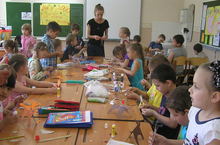 Сегодня, 6 июня, в рамках Дня русского языка, в пришкольном лагере «Радуга» состоялись интересные и разнообразные мероприятия. В отрядах провели викторину по произведениям А.С.Пушкина. Младшие ребята поучаствовали в конкурсе рисунков по сказкам поэта. Также воспитанники лагеря совместно с преподавателями ДМШ №14 организовали оркестр и попробовали исполнять различные музыкальные произведения.