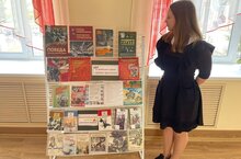 В библиотечном центре гимназии оформлена тематическая книжно-иллюстративная выставка «Поклон тебе, Великая Победа!». Представленные книги рассказывают о беззаветном героизме, о подвигах, совершенных нашими людьми во имя Родины . Они помогут подробнее узнать о Великой Отечественной войне, глубже понять прошлое своей страны и её роль в мировой истории. Шакирова М.Ш., зав.библиотекой, познакомил учащихся с произведениями «У войны не женское лицо» Алексеевич С., «Горячий снег» Бондарева Ю.