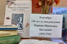 В рамках 130-летия со дня рождения русской поэтессы Серебряного века, прозаика, переводчицы Марины Цветаевой в школьном библиотечном центре оформлена выставка ее книг. Шакирова М.Ш., зав. библиотекой, провела беседу с учащимися старших классов «Марина Цветаева. Моим стихам...»