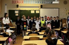С целью воспитания законопослушных участников дорожного движения, 11 октября отряд ЮИД «Светофорик» (руководитель Насибуллина А.А.) провёл праздник для первоклассников гимназии «Посвящение в пешеходы». ЮИДовцы в занимательной форме рассказали о Правилах безопасного поведения на дорогах. На праздник к ребятам пришли веселые персонажи Светофор и Красная Шапочка. Во время мероприятия первоклассники послушали песни, стихи о ПДД, разгадывали загадки, поучаствовали в игре «Это я, это я, это все мои друзья...». Гимназисты с интересом отгадывали названия дорожных знаков, приняли участие в играх и справились со всеми заданиями и получили много полезных советов.