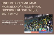 В течении недели на уроках истории и обществознания для 8-11 классов был организован просмотр презентации "Явление экстремизма в молодежной среде: фанат, спортивный болельщик, экстремист" с дальнейшим обсуждением.