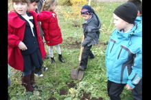 Продолжается акция "Зеленый рекорд". Учащиеся всех классов принимают активное участие в посадке деревьев.