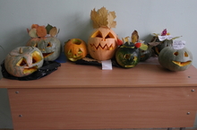 В предверии праздника Halloween учащиеся 5б класса провели конкурс поделок из тыкв. Победителем стал Баширов Максим, 2-е место занял Гамидов Эльмир, 3-е место - Маринина Диана.